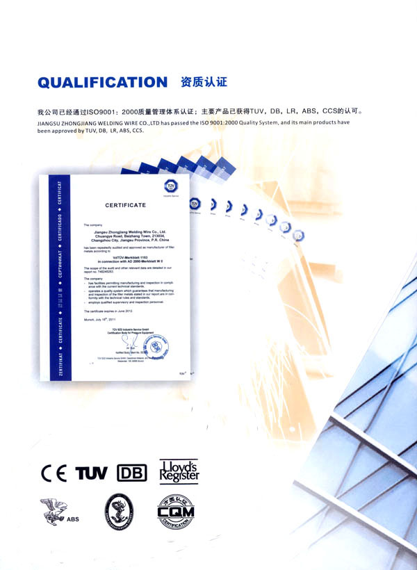 江蘇中江焊絲有限公司成立于1989年,注冊資金2188萬元,是一家專業(yè)從事氣體保護(hù)鍍銅焊絲、鋁焊絲、藥芯焊絲和埋弧焊絲的生產(chǎn)企業(yè)。 經(jīng)過近20年的不懈努力,目前企業(yè)年生產(chǎn)各類焊絲達(dá)50000余噸,產(chǎn)品不僅銷往全國各省市和地區(qū),還出口到美國、意大利、英國、法國、西班牙、波蘭、捷克、斯洛伐克、立陶宛、斯洛文尼亞、俄羅斯、烏克蘭、希臘、以色列、伊朗、南非、泰國、印尼、印度、澳大利亞等三十幾個國家和地區(qū)。 江蘇中江焊絲有限公司是通過IS09001:2000質(zhì)量管理體系認(rèn)證的企業(yè),其主要產(chǎn)品已獲得TUV,DB,LR,ABS,CCS的認(rèn)可。企業(yè)奉行“一流的產(chǎn)品,一流的信譽(yù),一流的服務(wù)”的宗旨,竭誠為客戶服務(wù)。