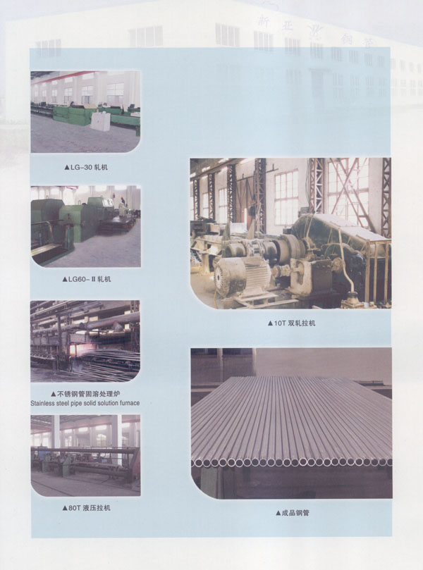 常州市新亞不銹鋼管有限公司創(chuàng)建于1989年,是不銹鋼無縫鋼管,不銹鋼焊接鋼管的專業(yè)生產(chǎn)企業(yè),現(xiàn)已躋身全國不銹鋼管主要生產(chǎn)企業(yè)行列。 公司占地面積55000m2,現(xiàn)有總資產(chǎn)8000余萬元。全廠現(xiàn)有職工280余人,專業(yè)技術(shù)人員50人。公司擁有國內(nèi)先進的生產(chǎn)設(shè)備,配備了LG60-2H高速雙線長行程冷軋管機組3臺,100噸、20噸、10噸系列拉機10臺,系列精軋管機組12臺,煤氣發(fā)生爐,連續(xù)式恒溫烘干爐等生產(chǎn)設(shè)備;同時超聲波探傷設(shè)施、渦流探傷設(shè)施、物理萬能試驗機、水壓試驗機、氣壓試驗機、化學分析儀器等檢測設(shè)備為公司生產(chǎn)合格的產(chǎn)品提供了有效保證。 公司年生產(chǎn)無縫鋼管和焊接鋼管8000余噸,主要牌號為:TP304、TP304L、TP321、TP316L、S31803、310S、904L、TP347H、TP347HFG、TP304H、TP321H、TP316H,產(chǎn)品嚴格執(zhí)行國標GB、美標ASTM、ASME、日標JIS、德標DIN、歐標EN,產(chǎn)品規(guī)格為外徑Φ6-Φ219mm、壁厚0.5-20mm。公司產(chǎn)品廣泛用于石油、石化、化工機械、電廠、鍋爐、熱交換器、船舶、紡織、化纖、機械、食品機械、環(huán)保等行業(yè)。 公司建立嚴格的質(zhì)量管理體系,不斷完善質(zhì)量檢驗制度和檢測手段,于1999年通過了ISO9002:94版質(zhì)量體系認證,2002年通過了ISO9000:2000版質(zhì)量體系認證,具備全國工業(yè)生產(chǎn)許可證書,工廠通過德國萊茵TüV的歐盟承壓設(shè)備PED認證和AD2000認證,所生產(chǎn)的“雙!迸撇讳P鋼管被評為“2003年度江蘇省鄉(xiāng)鎮(zhèn)企業(yè)名牌產(chǎn)品”,“江蘇省高新技術(shù)產(chǎn)品”。產(chǎn)品銷售遍布全國,同時在中東、歐洲、美國、東南亞地區(qū)有一定的市場知名度。 常州市新亞不銹鋼管有限公司始終堅持“提高工作質(zhì)量,優(yōu)化產(chǎn)品質(zhì)量,追求顧客滿意,發(fā)奮求實創(chuàng)新”的理念,努力開拓市場,擴大應(yīng)用范圍,滿足用戶需要,和新老客戶攜手共進,同創(chuàng)輝煌!
