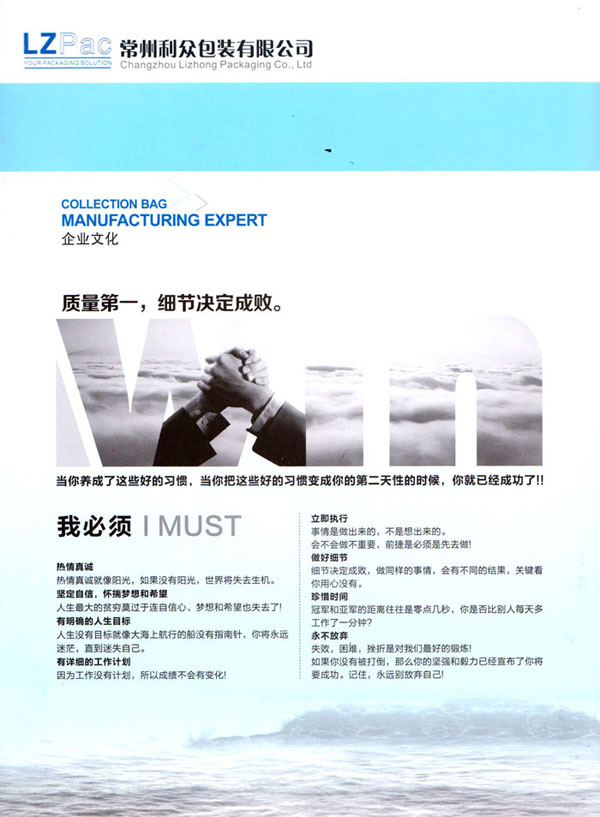 常州利眾包裝有限公司成立于2009年。經(jīng)過(guò)10多年的發(fā)展,已發(fā)展成為規(guī)模型的集成袋生產(chǎn)與研發(fā)基地。公司擁有四條拉絲生產(chǎn)線,20余臺(tái)各式圓織機(jī)、10余臺(tái)織帶機(jī),1臺(tái)寬幅涂膜機(jī),10余臺(tái)自動(dòng)裁剪機(jī),200多臺(tái)各式縫紉設(shè)備,其中電腦縫紉設(shè)備多達(dá)40多臺(tái)。公司月產(chǎn)各種中高檔集裝袋20萬(wàn)條左右。 擁有強(qiáng)大的質(zhì)量管理系統(tǒng)。公司成立初期就通過(guò)了ISO9001的體系論證。公司奉行“質(zhì)量第一,客戶(hù)至上”的經(jīng)營(yíng)理念,始終堅(jiān)持以質(zhì)量謀發(fā)展的原則,執(zhí)著追求以新工藝,新設(shè)備,高效率不斷優(yōu)化生產(chǎn)流程,降低生產(chǎn)成本以適應(yīng)市場(chǎng)。常州利眾包裝有限公司地處美麗的江南水鄉(xiāng)——常州。地理位置十分優(yōu)越。 公司主打產(chǎn)品為各種中高端集裝袋。包括各式拉筋袋,導(dǎo)電袋,抗靜電袋。公司客戶(hù)清單中包括有很多的國(guó)際知名企業(yè),世界500強(qiáng)企業(yè)。 眾包裝——你的包裝解決方案。