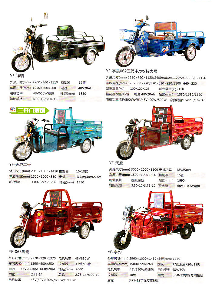 宇鋒車業(yè)創(chuàng)建于1995年,廠區(qū)面積10萬平方米,擁有專業(yè)技術(shù)人員100余名,是國內(nèi)領先的電動車研發(fā)與生產(chǎn)制造的廠家,也是專業(yè)從事研究、開發(fā)、制造電動車和新能源車的高新技術(shù)企業(yè)。 作為中國三輪車行業(yè)的開拓者,宇鋒擁有行業(yè)先進的機器人焊接線、自動化前處理線、自動化電泳噴涂和烘烤設備,公司擁有一流的整裝作業(yè)線,包括先進的沖擊、焊接、涂裝和總裝四大高品質(zhì)整車制造工藝設備,嚴格按汽車的標準來要求自己的產(chǎn)品。 宇鋒工廠各種檢測設備齊全,采用先進的生產(chǎn)工藝,高標準的質(zhì)量管理體系,產(chǎn)品質(zhì)量嚴格把控。已形成電動三輪車和新能源車的研發(fā)、制造、銷售和售后為一體的星級服務體系,堅持為消費者提供6S服務體系。 宇鋒產(chǎn)品擁有電動三輪車、新能源車和電動兩輪車等八大系列近百個型號品種,公司堅持自主研發(fā)自主制造,并順利通過ISO9001:2008質(zhì)量管理體系認證和ISO14001:2004國際環(huán)境管理體系認證。 宇鋒車業(yè)獲得工信部摩托車生產(chǎn)企業(yè)資質(zhì), 已有二十多款車型通過工信部目錄公告。宇鋒電動三輪車通過國家CCC認證,并由中國人民財產(chǎn)保險股份有限公司承保,有大合格證和車輛一致性證書,宇鋒電動三輪車上牌安全無憂! 在出口方面,宇鋒積極配合國家“一帶一路”政策的開展,在電動車行業(yè)里率先踐行走出去的戰(zhàn)略,依靠過硬的產(chǎn)品質(zhì)量和優(yōu)質(zhì)的服務,贏得了國外客戶的信賴和歡迎,2018年宇鋒車業(yè)在印度新德里建立制造工廠并良好運營,宇鋒產(chǎn)品遠銷印度、中亞、東南亞等二十多個國家,產(chǎn)品出口連續(xù)多年位居行業(yè)突出位置。