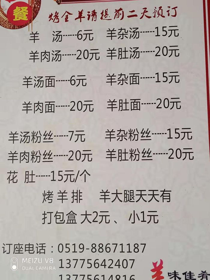 武進(jìn)區(qū)鄭陸寧河全羊館從事羊肉經(jīng)營(yíng)四十年,羊館經(jīng)營(yíng)面積300平方米,從羊頭到羊蹄都能做菜:羊頭、羊排、羊拐、羊蹄、羊耳,其他還有羊羔,烤羊,羊湯面,清水羊肉,全羊宴。羊肉湯只是白煮,湯白而濃稠,肉爛味鮮,還不腥不油不膩。你若細(xì)看菜單就能發(fā)現(xiàn),全羊席幾乎都是拿燉湯帶出來(lái)的,這更加顯示出羊肉湯的魅力。 我們結(jié)合現(xiàn)代人飲食文化的特點(diǎn),以考究的投料,精細(xì)的制作工藝,調(diào)出的全羊湯,湯汁乳白、鮮而不膳、香醇不膩、味道鮮美,具有補(bǔ)虛壯陽(yáng)、溫中暖下之功效。