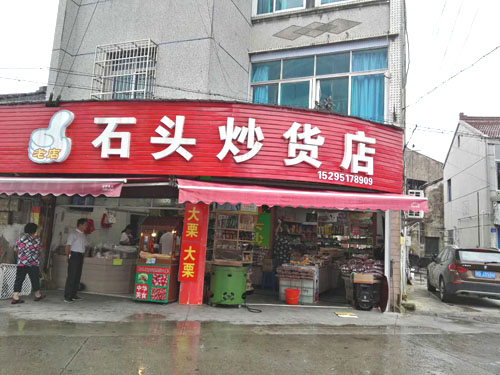 湖塘花東街上的“石頭炒貨店”是20多年的老字號(hào)了。上個(gè)世紀(jì)90年代,二十郎當(dāng)歲的“石頭”一一石愛軍從徐州來到武進(jìn),就在這條街上擺了個(gè)炒貨攤!皫灼椒矫椎男〉?cái),邊上架個(gè)大鐵鍋,炒出的瓜子、花生、蠶豆,鋪在竹篾上篩過、冷卻后就可以賣了!笔瘣圮娀貞洠址秽徖锩爸盏膰(yán)寒,擠在地?cái)偳皣L著剛出鍋的瓜子的場(chǎng)景,還歷歷在目。20多年過去了,鄰居們都成了最熟悉的親人,從年輕姑娘到抱著孫子的老人,大家還是最愛吃石頭炒的瓜子。而炒貨店的店面也擴(kuò)大了,并且在湖塘另開了多家分店。 生意最好的還是花東街上的老店。不大的店面,被一袋袋瓜子、花生、蠶豆、核桃堆得滿滿的,空氣里也滿滿都是堅(jiān)果的香氣。超大瓜子唇齒留香,去皮瓜子鮮香入昧,南瓜子皮薄肉厚,還有開心果、手剝松子、小油果、核桃、碧根果、小黃豆,以及炒米糕、蛋卷、麻松條、紫薯干、地瓜干、山芋片、鍋巴、芝麻糖、山楂、麻花、葡萄干….這么多美昧都是老板親手制作。愛吃點(diǎn)什么,就用一 長(zhǎng)柄勺鏟點(diǎn)兒什么,最質(zhì)樸簡(jiǎn)單的包裝袋里,裝著的是屬于這條老街居民記憶里的味道,穿過幾十年的時(shí)光,仍然鮮活生動(dòng)地銘刻在每一個(gè)人的里。 “少東家”石榮沖就是在這個(gè)老店、這條老街長(zhǎng)大的。他說目前自己炒瓜子的技藝還沒到火候,還在跟著父親學(xué)習(xí)的階段!碧暨x原料、炒制工序,每一步都有學(xué)問在里頭!蹦玫陜(nèi)的銷售冠軍“內(nèi)蒙大瓜子”來說,這種來自內(nèi)蒙、經(jīng)過充足日照的葵花子每顆長(zhǎng)度近2厘米,個(gè)頭特別大,也十分飽滿。拈一顆大瓜子,就連嗑起來的聲音也分外清脆。外皮很容易與內(nèi)仁剝離,碩大的瓜子仁口感十分香脆,與別家作料用得很足、吃起來特別鮮咸的瓜子不同,這種大瓜子更注重烘托原昧,淡淡的咸昧在舌尖掠過,剩余的都是屬于瓜子的天然香甜。