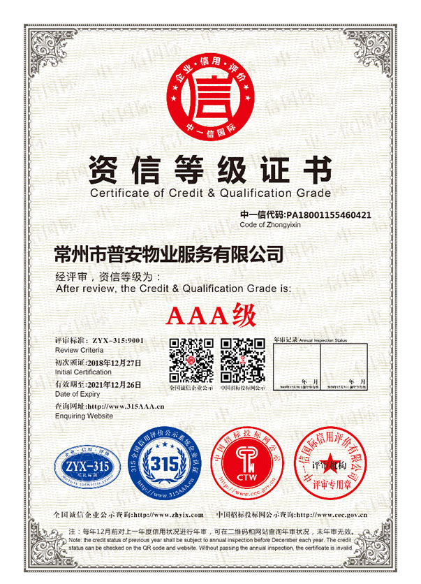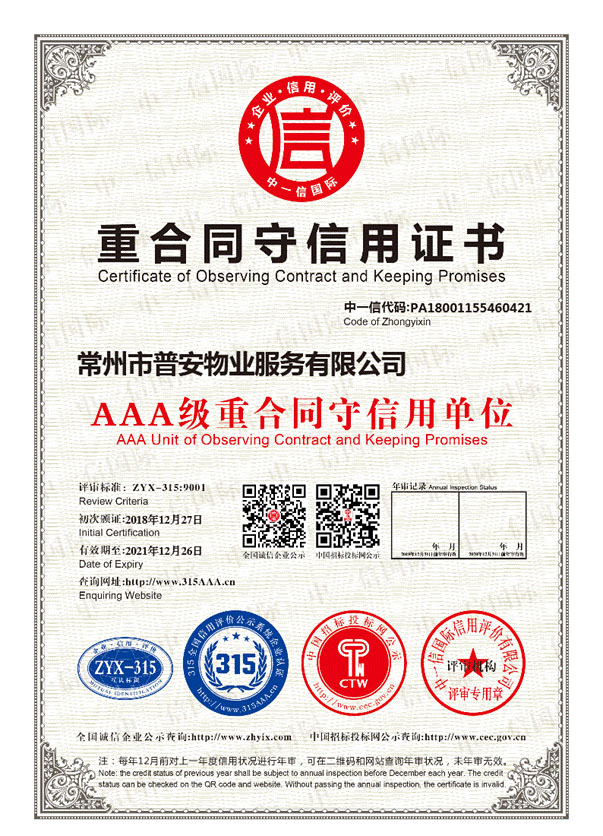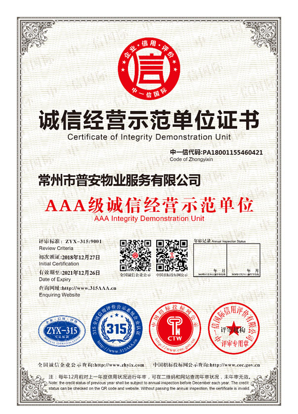 常州市普安物業(yè)服務(wù)有限公司成立于2014年6月,注冊(cè)資金500萬元人民幣,原公司名稱“常州市九合物業(yè)服務(wù)有限公司”具有國家三級(jí)物業(yè)服務(wù)資質(zhì)的物業(yè)管理服務(wù)企業(yè),公司本著“業(yè)主至上、服務(wù)第一,陽光服務(wù)、精品管理”的服務(wù)理念,精心打造具有普安物業(yè)特色的專業(yè)管理品牌。 普安物業(yè)公司現(xiàn)設(shè)總經(jīng)理辦公室、行政人事部、計(jì)劃財(cái)務(wù)部、品質(zhì)保證部、工程部、保安部、客服部、綜合部、拓展部八部一室。公司領(lǐng)導(dǎo),管理處主任均持有國家、省、市頒發(fā)的物業(yè)管理從業(yè)資格證書,擁有一支有知識(shí)、懂技術(shù)、有多年從事物管工作經(jīng)驗(yàn)的隊(duì)伍。 目前公司常州所管項(xiàng)目有:華都馨苑、聚豐公寓、航運(yùn)家園、淹城新苑、鵬欣麗都、金禧園、瑞景華庭、光大環(huán)保企業(yè)等多個(gè)項(xiàng)目。 服務(wù)宗旨:業(yè)主至上、服務(wù)第一,陽光服務(wù),精品管理。 質(zhì)量方針:以服務(wù)為企業(yè)之根本,視質(zhì)量為企業(yè)之命脈。 普安精神:誠信、團(tuán)結(jié)、創(chuàng)新、奉獻(xiàn)。 公司愿景:打造中國最值得信賴的物業(yè)服務(wù)品牌。