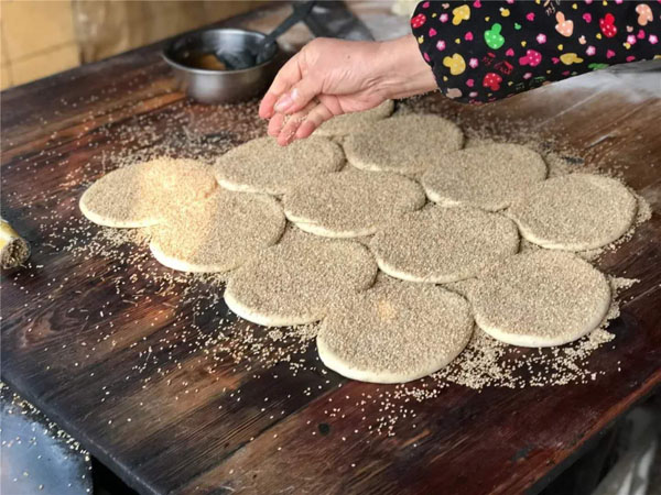 常州大麻糕已經(jīng)有150多年的歷史,常武各地的麻糕師傅、麻糕店數(shù)不勝數(shù),但今天小編要帶大家去的是一家隱藏在背街小巷里,至今仍保持著傳統(tǒng)手工制法的麻糕店。 沈正昌麻糕店位于遙觀鎮(zhèn)東街、國寧寺旁,雖然店門口連個(gè)招牌都沒有,卻不妨礙四面八方的食客慕名而來,大伙看中的正是這些純手工制作,原汁原味的大麻糕。如今的店主沈國平已經(jīng)是沈家第四代做麻糕的傳人了。 秉承著爺爺那輩傳下來的手藝,他們制作的麻糕塊大實(shí)誠,用料講究,口感酥軟,深受四周鄉(xiāng)鄰的歡迎。“我們還是老法,酥是生板油身擦的,餡里也是生板油摻糖,是真的綠色產(chǎn)品,沒有添加劑,沒有防腐劑,也不用甜蜜素,都是真家伙。” 每天凌晨一兩點(diǎn)鐘,沈國平就要去采買當(dāng)天最新鮮的豬板油,回來清理干凈,和上面粉攪拌均勻,制成面團(tuán)。麻糕的制作主要由沈國平妻子和兩個(gè)姊妹來完成。揉面、搓胚子、配油酥,按餡心、搟均勻,整個(gè)過程行云流水,連貫無比。 當(dāng)爐火燒得正旺,溫度能高達(dá)近300度,沈國平就上場了,赤手空拳,一撈一貼,一秒鐘的功夫,就把麻糕貼到了桶壁上。不過幾分鐘的功夫,麻糕就出爐了。經(jīng)過炭火爐子烤出來的,比一些電烤爐烤出的更香、更脆。