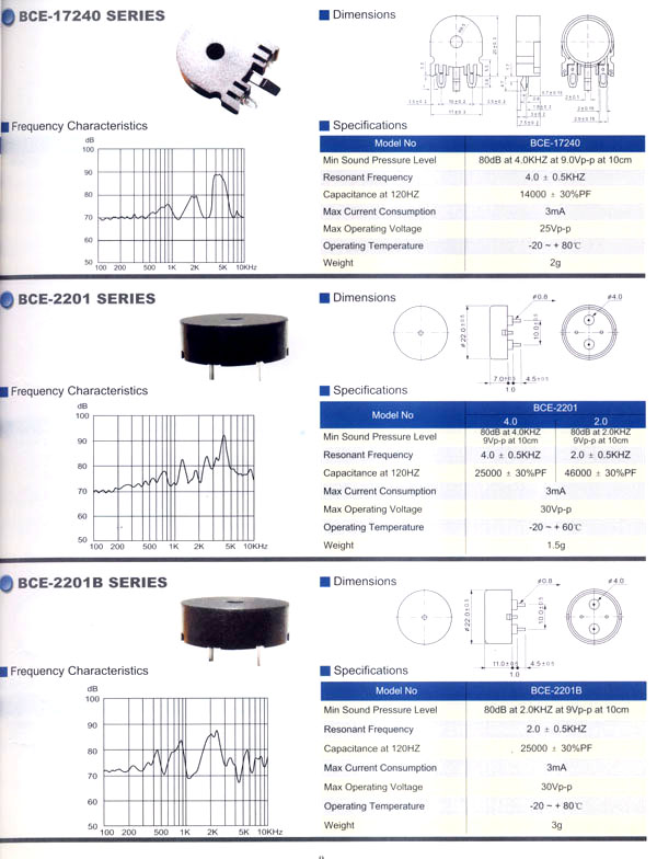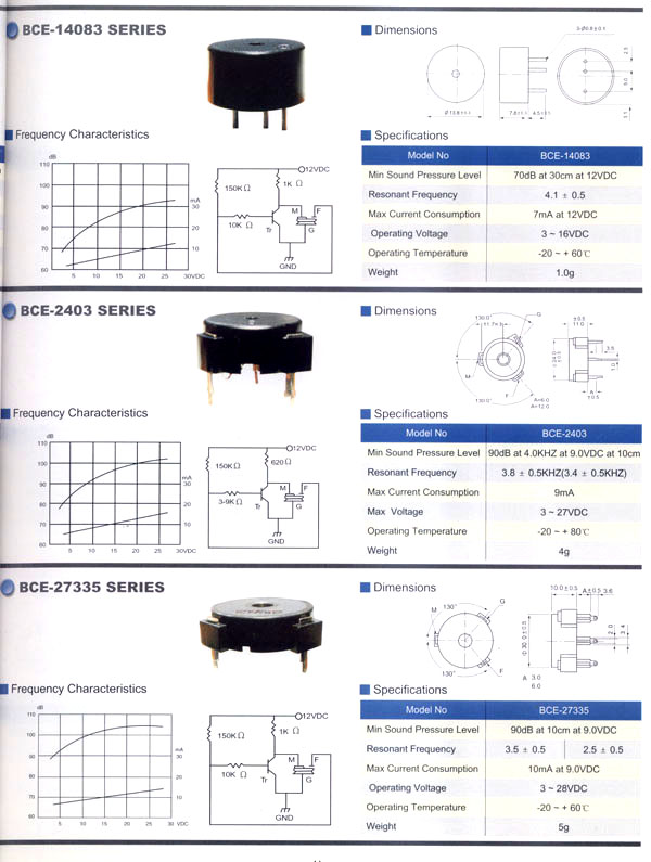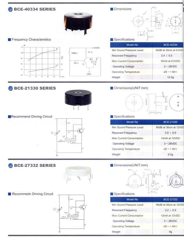 本公司生產(chǎn)的蜂鳴器結(jié)構(gòu)緊密,材質(zhì)輕,功耗低,質(zhì)量可靠,使用方便,價格合理,采用最新技術(shù)電子元件。廣泛應(yīng)用于打印機(jī)、電話、定時器、尋呼機(jī)、洗衣機(jī)、取款機(jī)、報警器、電腦終端機(jī)、復(fù)印機(jī)、電唱機(jī)、汽車及摩托車電子設(shè)備、空調(diào)設(shè)備、萬用表、遙控裝置、各種安全裝置以及便攜或電池式迷你型裝置。