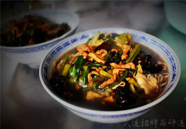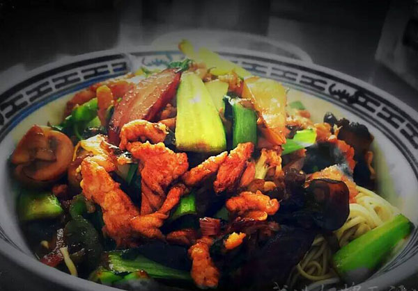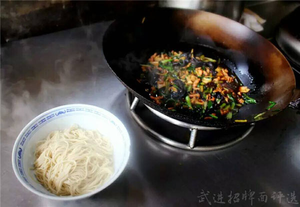 武進區(qū)青城面館經(jīng)營面積280平方米左右,主要特色是現(xiàn)炒肉絲,素菜蓋澆面,面館創(chuàng)始人今年63歲的王蘭珍,她對美食有著高于常人的悟性。她開過饅頭店,開過小飯館,承包過食堂,燒菜、取料樣樣在行,吃過的人常常贊不絕口。 20世紀(jì)初,在跟德興面館的老師傅學(xué)了做面手藝后,王蘭珍萌生了開一家面館的想法,除了可以養(yǎng)家糊口,最重要的是想讓更多人嘗嘗自己的手藝。于是,她在自己的住處擺起了幾張桌椅,面館就算正式營業(yè)了。因為家住青城橋,王蘭珍干脆取名“青城面館”。 “從早上5點多開始營業(yè),到下午1點多打烊,一天至少要賣掉300多碗面,用掉近160斤面粉!睘楹吻喑敲骛^的面條如此受歡迎,兒媳婦陸偉紅說秘訣在于湯頭和澆頭。湯頭分白湯和紅湯,白湯是由10斤豬骨頭熬制而成,湯色清澈而味道濃郁;紅湯以骨頭湯作底湯,加入茴香、甘草、草果等20多種中草藥,以及糖、醬油等調(diào)味品,鮮而不腥,散發(fā)出陣陣香味。 和一般面館事先燒制好澆頭,放在盆里供客人選擇不同,青城面館的澆頭都是一份份現(xiàn)炒的,特別講究食材的新鮮。就拿暢銷的肉絲蔬菜紅湯面來說,要先起猛火,把肉絲、木耳、蘑菇、青菜等食材放一起煸炒至香,然后澆在撈起的面條上。一碗面出來,現(xiàn)炒的澆頭與面條融合,味道香郁至極。 遙觀人的早晨,醒得有些早。對很多遙觀人來說,美好的一天是從青城面館開始的。那一碗碗現(xiàn)炒的蓋澆面,筋道爽滑、醬香味濃,溫存著他們的胃與記憶,帶來刻進骨子里的家鄉(xiāng)味道。