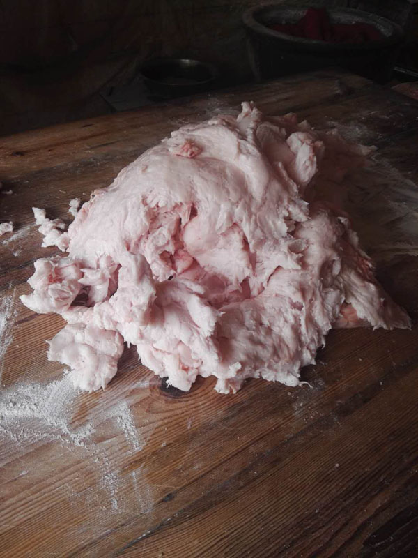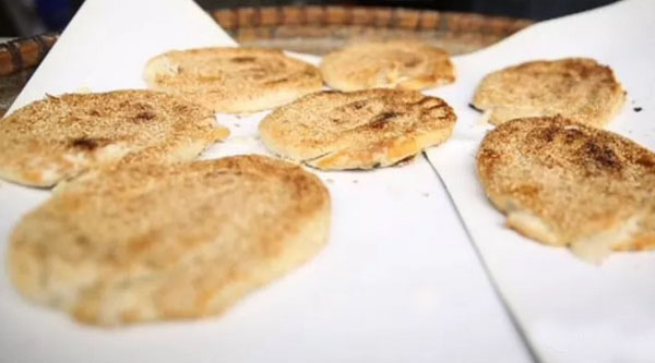 常州大麻糕已經有150多年的歷史,常武各地的麻糕師傅、麻糕店數不勝數,但今天小編要帶大家去的是一家隱藏在背街小巷里,至今仍保持著傳統手工制法的麻糕店。 沈正昌麻糕店位于遙觀鎮(zhèn)東街、國寧寺旁,雖然店門口連個招牌都沒有,卻不妨礙四面八方的食客慕名而來,大伙看中的正是這些純手工制作,原汁原味的大麻糕。如今的店主沈國平已經是沈家第四代做麻糕的傳人了。 秉承著爺爺那輩傳下來的手藝,他們制作的麻糕塊大實誠,用料講究,口感酥軟,深受四周鄉(xiāng)鄰的歡迎!拔覀冞是老法,酥是生板油身擦的,餡里也是生板油摻糖,是真的綠色產品,沒有添加劑,沒有防腐劑,也不用甜蜜素,都是真家伙! 每天凌晨一兩點鐘,沈國平就要去采買當天最新鮮的豬板油,回來清理干凈,和上面粉攪拌均勻,制成面團。麻糕的制作主要由沈國平妻子和兩個姊妹來完成。揉面、搓胚子、配油酥,按餡心、搟均勻,整個過程行云流水,連貫無比。 當爐火燒得正旺,溫度能高達近300度,沈國平就上場了,赤手空拳,一撈一貼,一秒鐘的功夫,就把麻糕貼到了桶壁上。不過幾分鐘的功夫,麻糕就出爐了。經過炭火爐子烤出來的,比一些電烤爐烤出的更香、更脆。