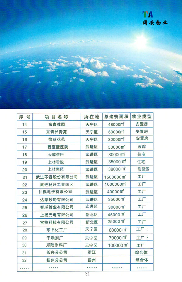 常州市同安物業(yè)管理有限公司注冊1999年,發(fā)展至今已有多年歷史,本公司坐落于美麗的龍城常州,秉承“融聚無限未來”的核心理念,融專業(yè)認(rèn)才,匯優(yōu)質(zhì)資源以”專心,細(xì)心,耐心”的服務(wù)態(tài)度,為客戶打造“安心,順心,稱心”的服務(wù)感受。 公司始終以“打造中國最值得信賴和最值得尊重的物業(yè)管理服務(wù)集成商”為愿景自我鞭策,不斷前行。同安物業(yè)以客戶滿意為終極目標(biāo),不斷加強(qiáng)”崗位資格認(rèn)證能力,人才招聘與職業(yè)化培訓(xùn)能力,產(chǎn)品策劃與管理設(shè)計(jì)能力,品質(zhì)監(jiān)督與管控能力,技術(shù)更新與運(yùn)營優(yōu)化力“五大專業(yè)能力的培養(yǎng)和提升,實(shí)現(xiàn)“精品化管理,專業(yè)化服務(wù)”。 公司發(fā)展至今,員工總數(shù)近千余人,大專以上學(xué)歷200多人,中高級技術(shù)人員160人,維修人員140人,物業(yè)管理師80名,公司接管面積達(dá)3100000多平方米,設(shè)涉及住宅小區(qū),別墅,大型游樂場,公園,醫(yī)院,廠區(qū),商業(yè)等。公司的工作管理逐步導(dǎo)入ISO9001質(zhì)量體系和ISO4001環(huán)境管理體系和GB/T28001職業(yè)健康安全管理體系,嚴(yán)格按照質(zhì)量體系的標(biāo)準(zhǔn)執(zhí)行。