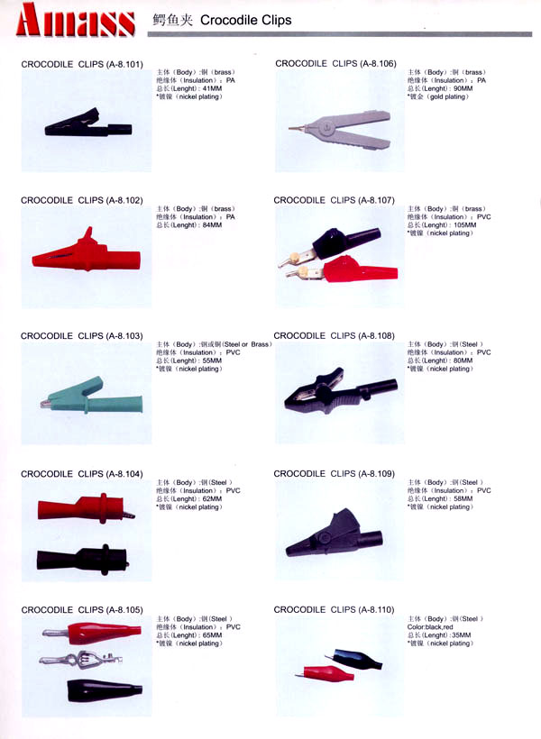 本公司專業(yè)生產(chǎn)各類香蕉插頭,香蕉插座,接線柱,電瓶夾,鱷魚夾,測試導(dǎo)線,測試筆等。產(chǎn)品分2mm/2.5mm/3mm/3.5mm/4mm五大系列,百余種款式, 各種香蕉插廣泛用于儀器、儀表、電力測試、教學(xué)、玩具,視聽設(shè)備、醫(yī)療儀器,保健產(chǎn)品等領(lǐng)域。公司技術(shù)力量雄厚,生產(chǎn)工藝先進,產(chǎn)品遠銷港、臺、歐美,并與飛利浦等國際品牌配套。公司本著精益求精的理念,歡迎新老客戶光臨。 我們擁有資深的工程師和豐富的電子產(chǎn)品銷售經(jīng)驗,專業(yè)生產(chǎn)各類電子接插件產(chǎn)品。 香蕉插頭,香蕉插座,電瓶夾,鱷魚夾等品種齊全、 質(zhì)量可靠,致力服務(wù)于通訊、數(shù)據(jù)通信、消費類電子產(chǎn)品、計算機和計算機外圍設(shè)備以及工業(yè)應(yīng)用等領(lǐng)域,能給客戶提供全面采購解決方案。 我們秉承穩(wěn)健作風(fēng)、誠實經(jīng)營、合理價格、完善服務(wù)的宗旨,在全體客戶的支持下,公司不斷創(chuàng)新進取,業(yè)績蒸蒸日上,已與數(shù)十家電子零件制造商及其分支機構(gòu)建立密切合作關(guān)系,在國內(nèi)擁有數(shù)百家固定客戶。