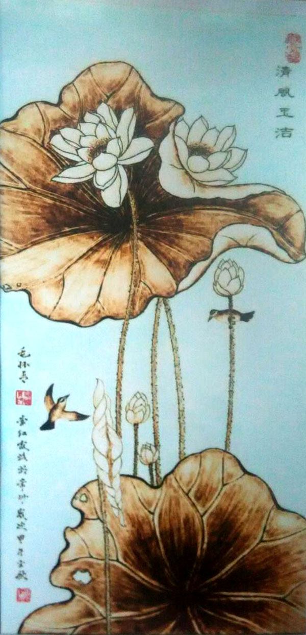 毛懷青,江蘇常州市武進(jìn)人。 中國(guó)工藝美術(shù)學(xué)會(huì)會(huì)員,常州市中國(guó)烙畫研究會(huì)副會(huì)長(zhǎng),常州市文博鑒賞協(xié)會(huì)理事,非物質(zhì)文化遺產(chǎn)烙畫傳承人。高級(jí)工藝美術(shù)師。 年輕時(shí)學(xué)習(xí)國(guó)畫、油畫中年蔓現(xiàn)掌州咯畫源遠(yuǎn)流長(zhǎng)、歷史悠久,有著其它美術(shù)門類不具備的藝術(shù)風(fēng)格與特色。可謂是工藝美術(shù)中的一朵十分亮麗的藝術(shù)奇葩,是我民族先人給我們留下的一份不可多得十分珍貴的一份文化遺產(chǎn)。為弘揚(yáng)與發(fā)展這份優(yōu)秀文化遺產(chǎn),我從此下定決心研究烙畫,愿付出一份力量為振興烙畫事業(yè)做出貢獻(xiàn)。至今已潛心研究幾十年,取得了可喜的成績(jī),被業(yè)界公認(rèn),社會(huì)關(guān)注與認(rèn)可。有“江南烙畫第一筆”之美譽(yù)。 近年來(lái),創(chuàng)作的烙畫作品分別獲得過全國(guó)、省市級(jí)的金、銀、銅獎(jiǎng)多次。中央電視臺(tái)曾兩次播放過本人的烙畫作品,江蘇電視臺(tái)、常州電視臺(tái)也曾多次播放過本人的作品與烙畫藝術(shù)生涯,揚(yáng)子晚報(bào)、常州日?qǐng)?bào)、常州晚報(bào)也曾多次報(bào)導(dǎo)過本人的烙畫作品,出版物有三種版本都能查閱到介紹本的烙畫從藝生涯與藝術(shù)業(yè)績(jī)。